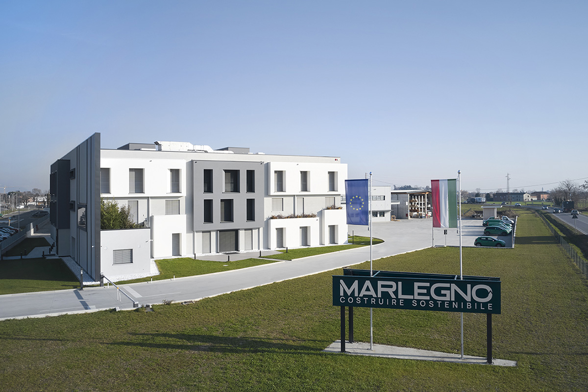 Marlegno è una delle aziende italiane di riferimento nel settore della bioedilizia. Fondata nel 2000 a Bergamo, è specializzata nella realizzazione di strutture in legno ad alta efficienza energetica per ambiti residenziali, industriali e pubblici, integrando progettazione digitale, sostenibilità e innovazione. La nuova sede di Calcinate rappresenta la sintesi della sua visione industriale orientata al futuro dell’edilizia sostenibile: il complesso comprende una struttura uffici e showroom di 2.100 mq e un Innovation Center di 12.000 mq e ha una superficie totale di 25.000 mq.