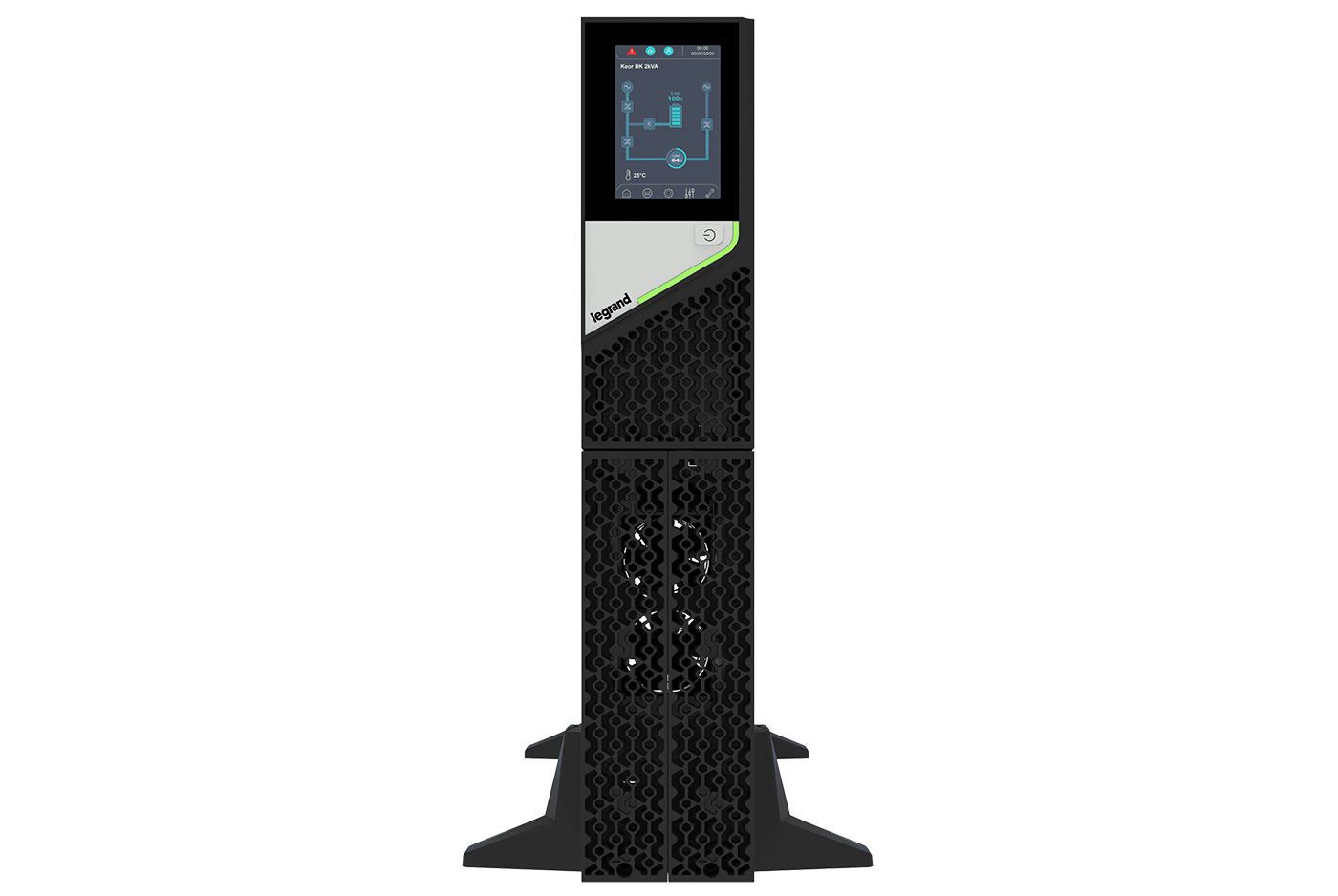 Keor DK nella versione convertibile è dotato di un display LCD touchscreen intuitivo con sensore di gravità che ruota automaticamente lo schermo in base all’orientamento dell’UPS.