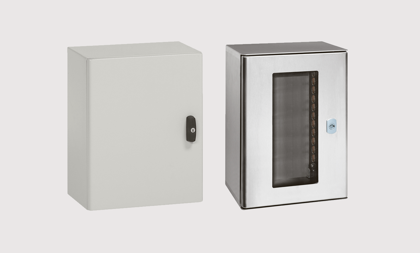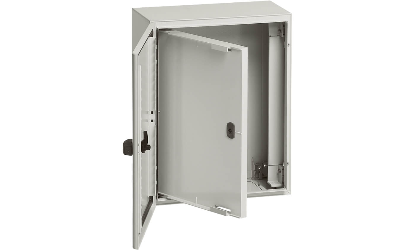 Atlantic è disponibile con quadri in lamiera che possono essere completati con porte in lamiera piena o con vetro.