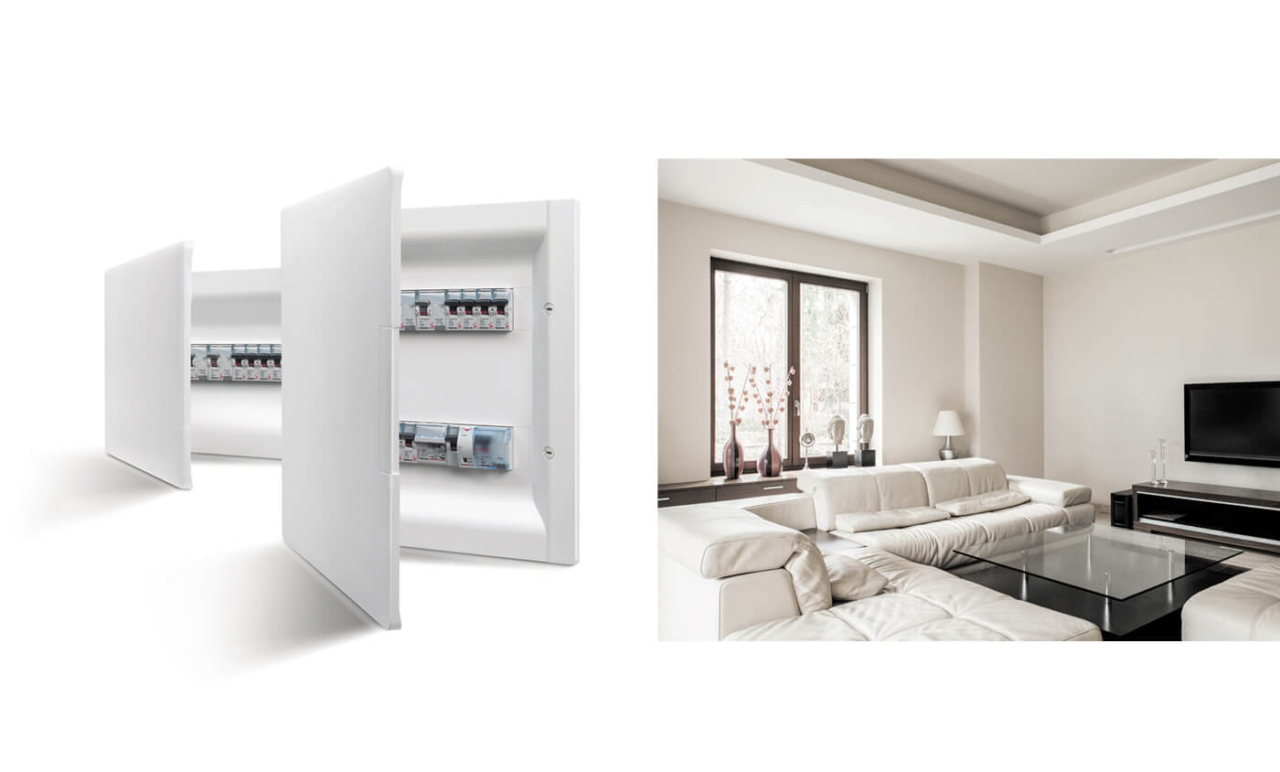- Linea Space: centralini da incasso in resina IP40 per applicazioni residenziali, con modularità da 8 a 72 moduli.