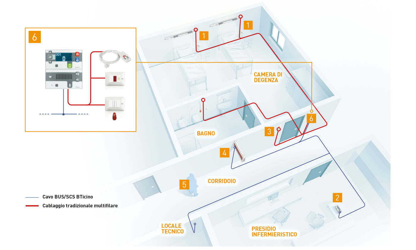 Una soluzione è il sistema di chiamata che permette di realizzare impianti con comunicazione visiva e acustica che, grazie alla consolidata tecnologia BUS-SCS, possono essere installati con semplicità e rapidità.