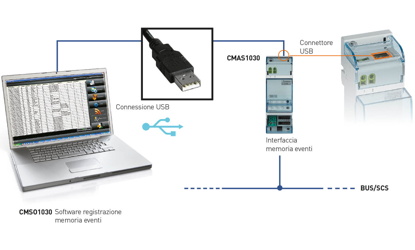 Tutti gli eventi sono memorizzati sull’interfaccia memoria eventi (sino a 100.000) e successivamente, se necessario, possono essere esportati su PC per successive analisi.