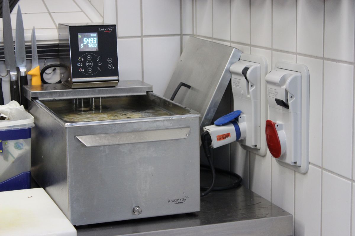 Efficienza, sicurezza elettrica e alimentare sono molto più importanti dell’estetica, in ambienti che risultano necessariamente aggressivi per la presenza di oli, vapori e acqua. Così, per gestire al meglio il processo di preparazione delle pietanze, garantendo elevati standard di sicurezza, è stata evitata la presenza di fiamme libere. Tutto il calore necessario viene fornito attraverso la rete elettrica, sfruttando piastre ad induzione. Una scelta che ha comportato la necessità di installare prese e componenti in grado di tollerare un ambiente particolarmente aggressivo, oltre a potenze anche elevate.