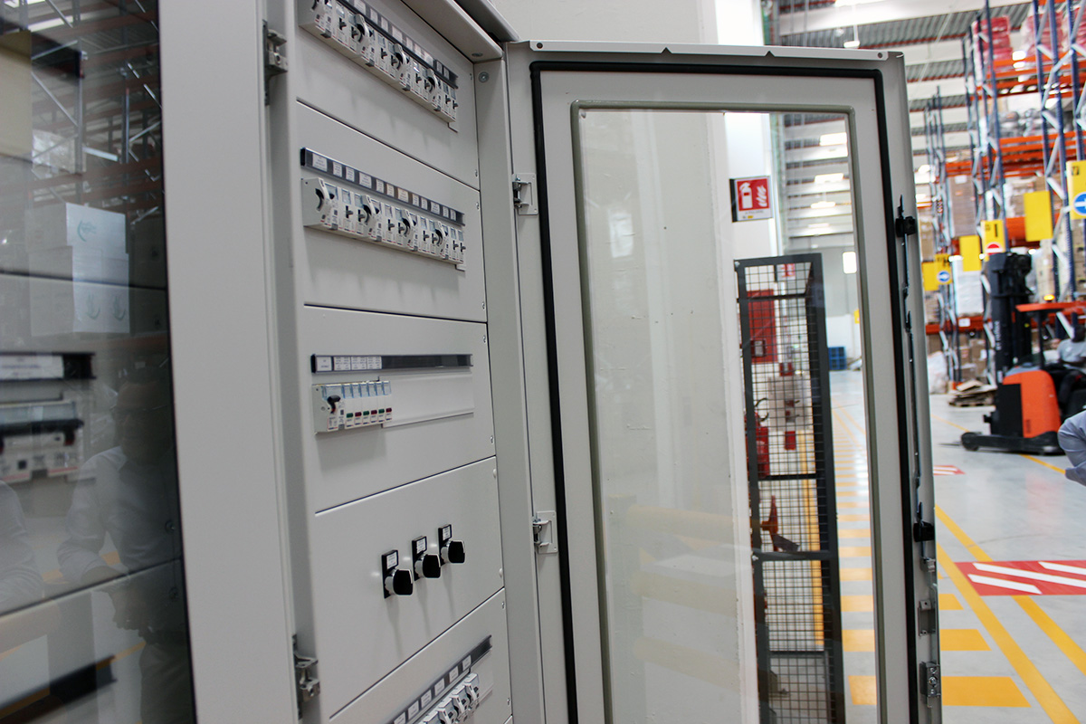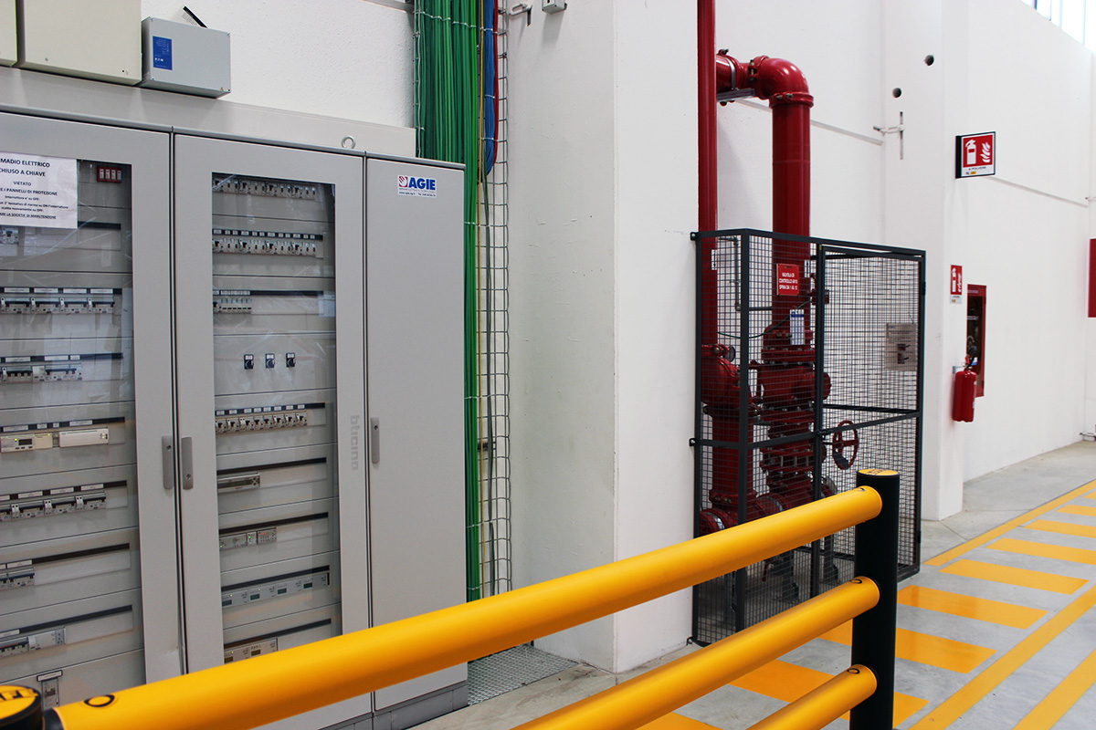 La corretta scelta dei componenti, in un’installazione tanto complessa e ramificata, non può trascurare la protezione passiva. Anche in questo caso, A.g.i.e. ha trovato nel catalogo BTicino le risposte alle proprie esigenze specifiche. Le passerelle in acciaio a filo Cablofil, infatti, sono caratterizzate da un sistema di fissaggio senza viti che, quindi, è molto rapido. I cambi di direzione possono essere realizzati in loco, senza l’utilizzo di accessori specifici. Caratteristiche molto apprezzate dagli operai che hanno lavorato in quota per la posa dei componenti. L’elevata resistenza meccanica rende le passerelle Cablofil adatte a supportare anche carichi elevati, oltre a prevenire eventuali strappi o schiacciamenti quando i cavi stessi raggiungono i quadri di distribuzione. In quest’area, dove i fasci di cavi devono aggirare eventuali ostacoli e sono esposti al rischio di danno accidentale, si è optato per la Serie P31 Gamma-P Legrand. In questo caso, infatti, la dotazione di accessori permette di creare rapidamente i percorsi ideali, coniugando così le esigenze di sicurezza con quelle estetiche. La potenza dentro l’armadio Analoghi criteri hanno guidato le scelte progettuali dei trenta quadri di distribuzione che, posti strategicamente all’interno dei quattro capannoni in cui è suddiviso il Polo logistico, alimentano le singole utenze, ma anche la rete Konnex che permette di gestire i sensori che regolano l’illuminazione dei singoli corridoi, oltre agli impianti speciali.