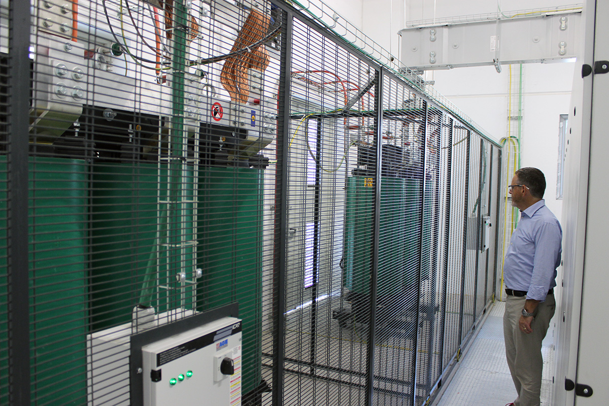 Inutile ribadire che anche i trasformatori devono essere molto affidabili perché da essi dipende sia l’erogazione sia la qualità dell’energia distribuita. A Basiano sono stati impiegati due trasformatori da 1600 kVA: una ridondanza necessaria per fronteggiare, nel tempo, qualunque guasto, ma anche per garantire la possibilità di effettuare i necessari interventi di manutenzione.